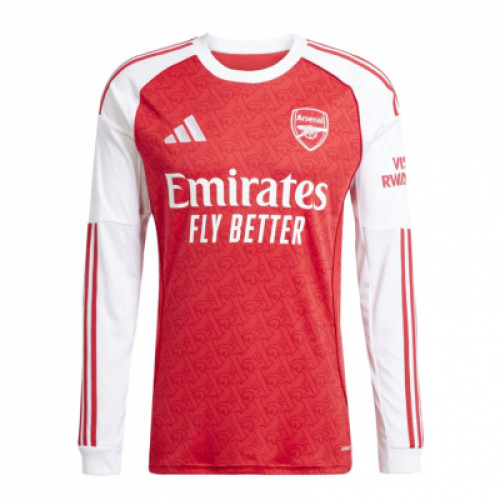 Домашняя джерси Arsenal сезона 2025/26 с длинным рукавом - фирменный красный корпус с тонким узором и контрастные белые рукава с красными полосами. Белый ворот и аккуратная посадка делают форму яркой и узнаваемой, а клубная эмблема и логотипы добавляют тот самый матчевый вайб. Отлично смотрится и на игре, и в повседневном спортивном стиле.