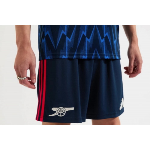 Футбольные гостевые шорты «Арсенал» сезона 2025/26 представляют собой профессиональную экипировку, выполненную из влагоотводящего 100% полиэстера. Модели обеспечивают максимальный комфорт во время тренировок и матчей, имеют свободный крой, надежную фиксацию на талии и логотипы клуба. В сезоне 25/26 могут использоваться как стандартные, так и альтернативные варианты. Основные характеристики : Материал: Технологичный, легкий полиэстер, обеспечивающий сухость (влагоотвод). Дизайн: В соответствии с коллекцией 25/26 (гостевая/резервная), часто сочетается с уникальными элементами стиля, используемыми в Лиге чемпионов. Особенности: Легкий вес, эластичный пояс, качественная вышивка логотипов Арсенал и бренда. Размерный ряд: Доступны от S до XXL.