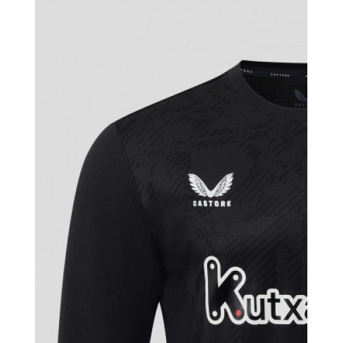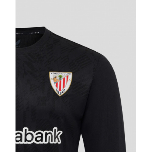 Вратарская форма «Атлетика Бильбао» сезона 2025/26 от Castore выполнена в строгом чёрном цвете с едва заметным геометрическим узором, придающим глубину дизайну. Логотип клуба и спонсора Kutxabank контрастно выделяются на фоне, создавая лаконичный и уверенный образ. Длинные рукава обеспечивают комфорт и защиту, а лёгкий эластичный материал с влагоотводящими свойствами гарантирует свободу движений и оптимальную вентиляцию во время игры.