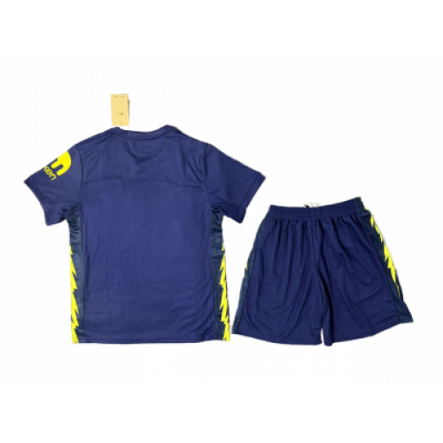 Детская гостевая форма «Атлетико Мадрид» сезона 2025/2026 разработана на базе взрослого комплекта «Electric Blue», но с учетом особенностей комфорта для ребенка. Дизайн и стиль Цвет: Основной фон — благородный темно-синий. Главная фишка этого сезона — яркие «электрические» акценты золотистого цвета. Графика: На футболке и шортах могут присутствовать тонкие графические элементы, имитирующие разряды молнии, что символизирует энергию молодых фанатов и игроков.