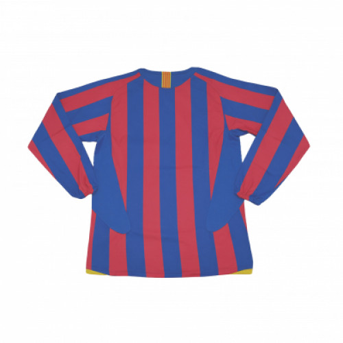 Ретро джерси FC Barcelona сезона 2005/06 с длинным рукавом - классические сине-гранатовые вертикальные полосы и яркие жёлтые детали, которые сразу дают тот самый олдскульный вайб Барсы. Дизайн максимально узнаваемый и контрастный, отлично смотрится на фото и в повседневных образах, если хочется легендарную эпоху клуба. Хороший вариант для фанатов Барселоны и коллекции ретро формы.
