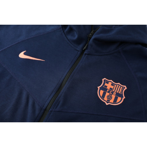 Синий спортивный костюм «Барселона» с капюшоном — это стильная и удобная экипировка, выполненная в цветах клуба, часто с использованием качественного полиэстера или трикотажа. Комплект включает толстовку/худи с регулируемым капюшоном и джоггеры, украшенные эмблемой «Барсы». Модель обеспечивает комфорт, имеет манжеты и карманы. Основные характеристики: Дизайн: Синий цвет с символикой ФК «Барселона». Верх: толстовка с капюшоном на молнии, широкие резинки на манжетах. Низ: Брюки-джоггеры с карманами (часто на молнии) и резинкой внизу. Назначение: Активный отдых, тренировки, повседневное ношение. Костюм подходит для создания современного спортивного образа