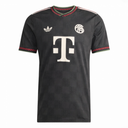 Резервная форма Bayern Munich - тёмно-серая джерси с фактурным узором и яркими красными акцентами на вороте и рукавах. Смотрится строго и современно, при этом сразу узнаётся по контрастной белой символике и чистому силуэту. Отличный вариант, если хочется резервный комплект, который выделяется на фото и в игре, но остаётся в стиле клуба.