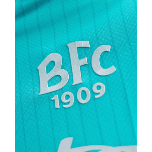Резервная форма «Болоньи» сезона 2025/26 от Macron — свежая и дерзкая интерпретация клубного стиля. Мягкий мятно-бирюзовый цвет мгновенно выделяет форму на поле, а тонкие вертикальные полосы добавляют лёгкость и динамику силуэту. На груди — белая надпись Saputo и минималистичный логотип BFC 1909, а на фоне, при внимательном взгляде, можно разглядеть стилизованный портрет легендарного тренера клуба — дань уважения истории и духу Болоньи. Контрастные тёмно-синие манжеты и воротник с бордовыми акцентами сохраняют связь с классическими цветами команды. Ткань с технологией EcoSoftlock обеспечивает вентиляцию и комфорт в любых условиях. Современная, лёгкая и символичная — форма, которая говорит: Болонья помнит свои корни, даже когда играет на новом уровне.