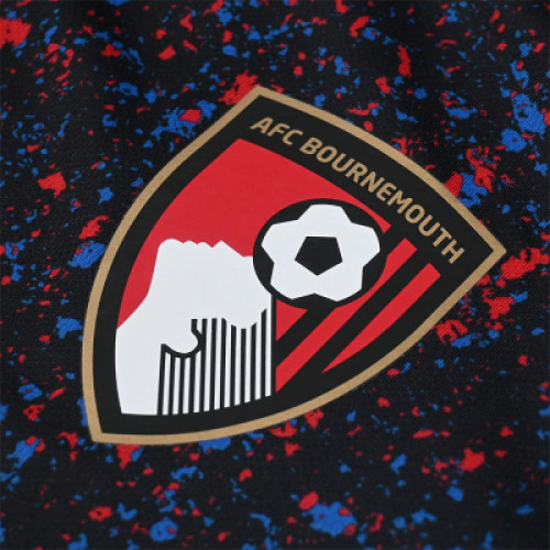 Борнмут футболка предматчевая 2025/26 Футболка выполнена в оригинальном дизайне с чёрной основой и эффектным узором из красных и синих акцентов, создающим яркий и энергичный образ. На груди размещён клубный герб «Борнмут», логотип Umbro и спонсорская эмблема. Модель изготовлена из лёгкой и дышащей спортивной ткани, которая быстро отводит влагу и обеспечивает максимальный комфорт во время разминки и подготовки к матчу. Свободный крой позволяет сохранять свободу движений, а стильный дизайн делает футболку отличным вариантом и для повседневной носки. Идеальный выбор для болельщиков, которые хотят подчеркнуть поддержку «Борнмута» и разделить атмосферу предматчевых моментов сезона 2025/26.