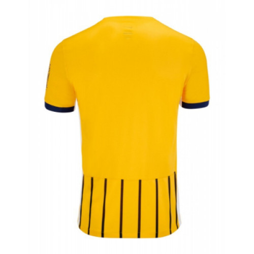 Брайтон футболка резервная 2025/26 Резервная футболка «Брайтон энд Хоув Альбион» сезона 2025/26 выполнена в ярком жёлтом цвете с тонкими вертикальными тёмно-синими полосами. Контрастные детали на воротнике и рукавах добавляют динамики и подчёркивают клубный стиль. Высокотехнологичная ткань обеспечивает отличную вентиляцию и комфорт при любой активности. Клубный герб, логотип Nike и спонсорская надпись на груди подчеркивают подлинность формы и её принадлежность Английской Премьер-лиге. Яркий и смелый вариант экипировки для фанатов «чаек».