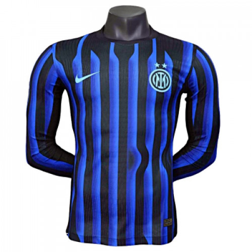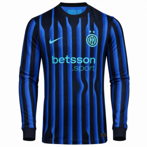Футболка Интер Милан на сезон 2025/26 с длинным рукавом — это элемент экипировки, сочетающий столетние традиции клуба. В этом сезоне дизайн посвящен возвращению к классическим вертикальным полосам в современной интерпретации. Дизайн и цвета: Традиционные широкие вертикальные полосы синего и черного цветов. Особенность сезона 2025/26 — глубокий, насыщенный оттенок синего и использование золотистых элементов в отделке. Символика: На груди слева — обновленный герб «Интера» с двумя золотыми звездами, подтверждающими статус клуба, завоевавшего 20+ чемпионских титулов. Справа — логотип, выполненный в белом цвете. Манжеты выполнены из плотной эластичной ткани для идеальной фиксации на запястье. Рукава полностью повторяют полосатый паттерн основной части футболки.