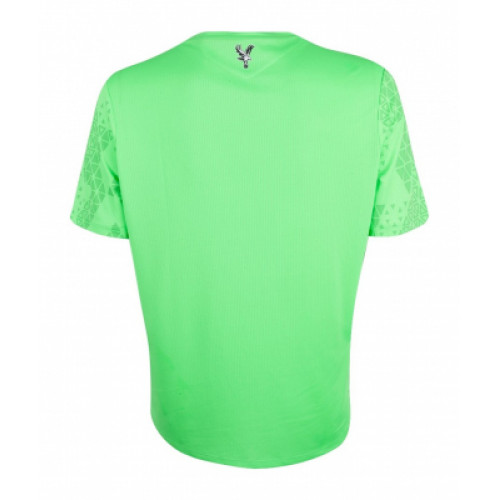 Кристал Пэлас футболка вратарская 2025/26 Вратарская футболка «Кристал Пэлас» сезона 2025/26 представлена в ярком зелёном цвете, который обеспечивает отличную видимость на поле. Геометрический узор из треугольников добавляет динамики и подчёркивает современный стиль экипировки. На груди размещены клубный герб, логотип производителя и спонсорская надпись NET88, а под воротником сзади — эмблема «орлов», символизирующая клубную принадлежность. Контрастный чёрный воротник завершает дизайн и придаёт форме аккуратность. Футболка изготовлена из лёгкого технологичного материала, обеспечивающего вентиляцию и комфорт в условиях высокой нагрузки. Она идеально подходит для матчей и тренировок, позволяя вратарям сохранять свободу движений и уверенность в игре.