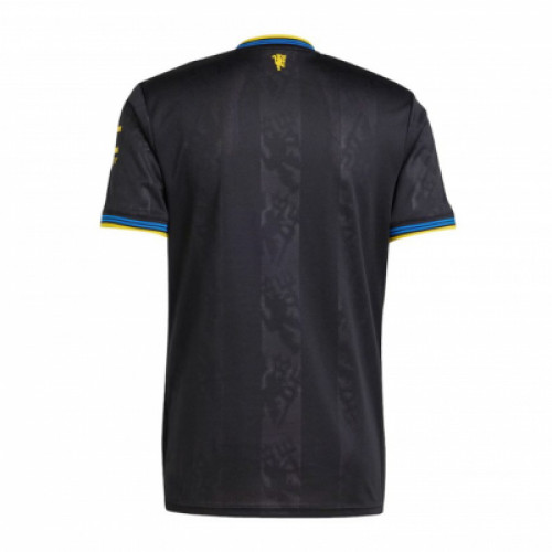 Детская резервная форма Manchester United нового сезона - стильный чёрный комплект с яркими жёлтыми деталями и голубыми акцентами на вороте и рукавах. Цвета смотрятся свежо и заметно: тёмная база делает образ строгим, а контрастные элементы сразу выделяют форму на поле. Отличный вариант, если хочется актуальный дизайн сезона и чтобы комплект выглядел не «как у всех». Подходит для тренировок, игр и повседневной носки, удобно сидит и не мешает двигаться. Отличный выбор для юного фаната Manchester United