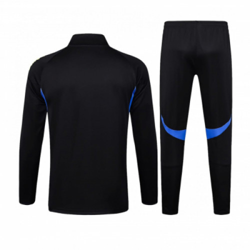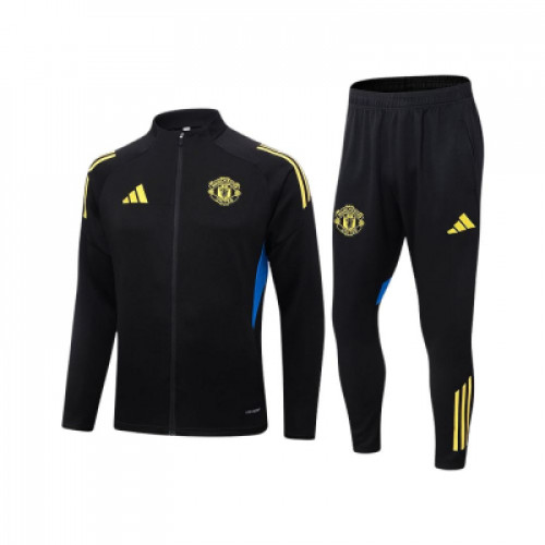Тренировочный костюм Manchester United 2025/26 - чёрный комплект с яркими жёлтыми акцентами и синими вставками, выглядит контрастно и очень “командно”. Олимпийка на молнии и брюки в одном стиле дают цельный образ, который одинаково хорошо смотрится на тренировках и в городе. Практичный тёмный цвет плюс заметные детали - отличный вариант для активной носки.