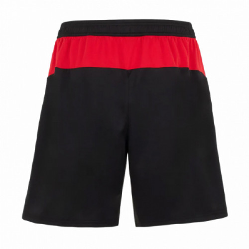 Домашние шорты AC Milan сезона 2025/26: базовый чёрный цвет с красными вставками по бокам, аккуратный минималистичный дизайн. На бедре — клубный герб «россонери» со звездой, напротив — логотип PUMA. Удобная посадка на резинке и лёгкая спортивная ткань — под матч, тренировки и повседневный спорт-стиль.