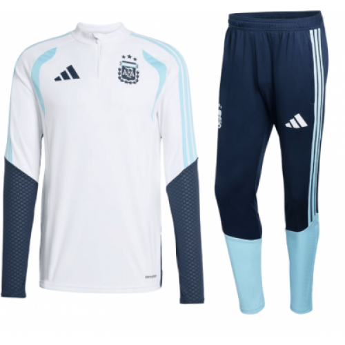 Тренировочный костюм сборной Аргентины сезона 2025/2026 в белом цвете — это элегантная и технологичная экипировка, созданная для подготовки «альбиселесте» к матчам ЧМ-2026. Основные характеристики Цвет: Основной кипенно-белый с акцентами небесно-голубого и золотого цветов. Материал: 100% переработанный полиэстер (интерлок). Ткань легкая, дышащая и устойчивая к зацепкам. Технология AEROREADY: Специальная структура волокон моментально впитывает и отводит влагу, сохраняя ощущение свежести даже при интенсивных нагрузках.