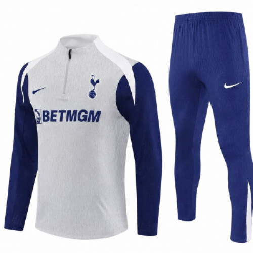 Детский тренировочный костюм Тоттенхэма на сезон 2025-2026. Олимпийка на короткой молнии выполнена в сером цвете с синими эмблемами клуба на груди. Штаны синие, с белыми эмблемами. Недорогая, универсальная детская футбольная форма из полиэстера высшего качества для высоких и невысоких мальчиков, девочек, подростков, юношей и девушек для активного спорта, для занятий футболом, тренировок в зале, на поле, в школе на физкультуре, в университете, в спортивной секции, на соревнованиях, на тренировках