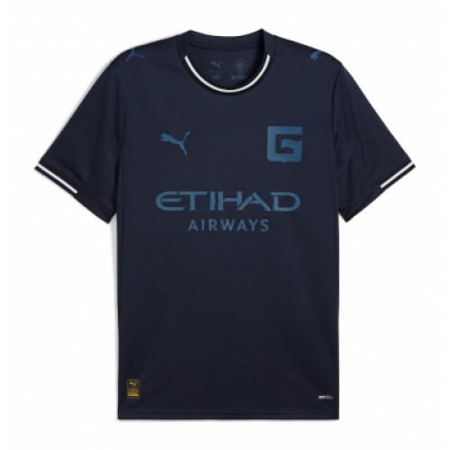 Резервная форма «Жироны» сезона 2025/26 от Puma выполнена в тёмно-синем цвете с минималистичными деталями и акцентами в светло-голубом тоне. На груди расположен обновлённый символ клуба — буква G, а также логотип спонсора Etihad Airways. Современный дизайн отражает элегантность и технологичность, а ткань с системой DryCELL обеспечивает эффективное отведение влаги и комфорт в любых условиях. Универсальный стиль делает футболку подходящей как для тренировок, так и для повседневного образа.